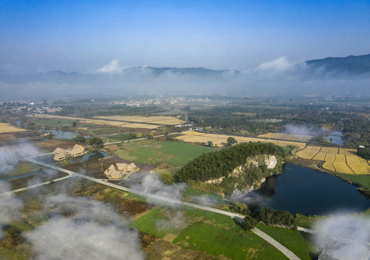 良渚古城遗址公园规划总面积14.33平方公里,分城址区、瑶山遗址区、平原低坝—山前长堤区和谷口高坝区4个片区