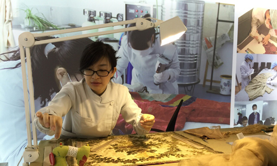 纺织品文物本身涉及的材料品种特别多,相对来说比较复杂,修复过程会涉及到方方面面,比如材料方面的知识。
