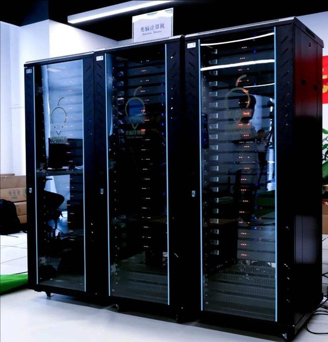 浙江大学联合之江实验室1日在杭州发布一款包含1.2亿脉冲神经元、近千亿神经突触的类脑计算机。该计算机使用了792颗由浙江大学研制的达尔文2代类脑芯片,神经元数量规模相当于小鼠大脑。(记者朱涵、殷晓圣)