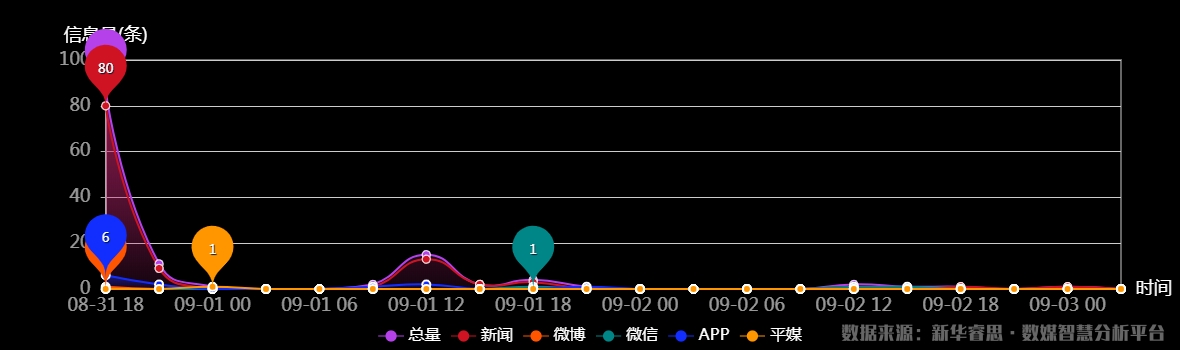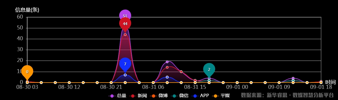 截至目前,该文章在互联网上传播时长为2天8小时52分钟,传播总量137篇,有93个媒体参与传播。其中2020-08-31 15时是传播的高峰期,共传播60篇文章。(数据来源:新华睿思•数媒智慧分析平台)