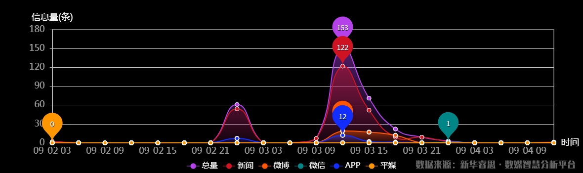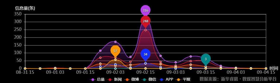 截至目前,该文章在互联网上传播时长为2天9小时21分钟,传播总量339篇,有240个媒体参与传播。其中2020-09-03 11时是传播的高峰期,共传播91篇文章。(数据来源:新华睿思•数媒智慧分析平台)