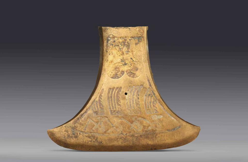 图为“战国羽人竞渡纹铜钺”。宁波博物院供图。