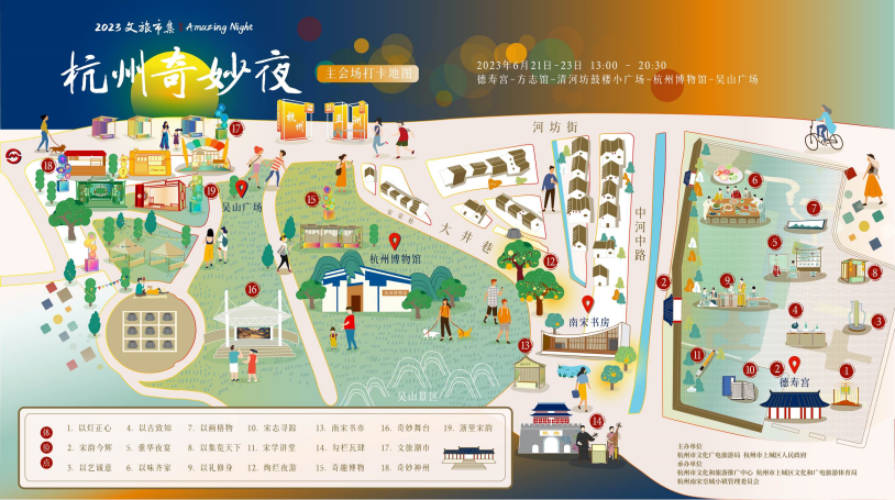 在距离杭州亚运会开幕第94天之际,由杭州市文化广电旅游局、杭州市上城区人民政府主办的“2023文旅市集•杭州奇妙夜”活动在杭州德寿宫拉开帷幕。
