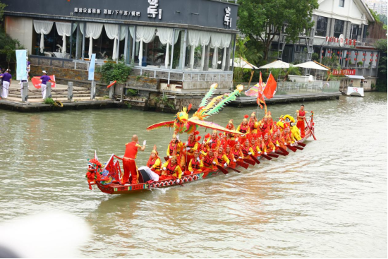 当天,约30艘风格独特、设计迥异的龙舟在南塘河中劈波斩浪。这些龙舟队伍均来自温州各村,龙舟的舟身设计都独具当地特色,让人目不暇接。