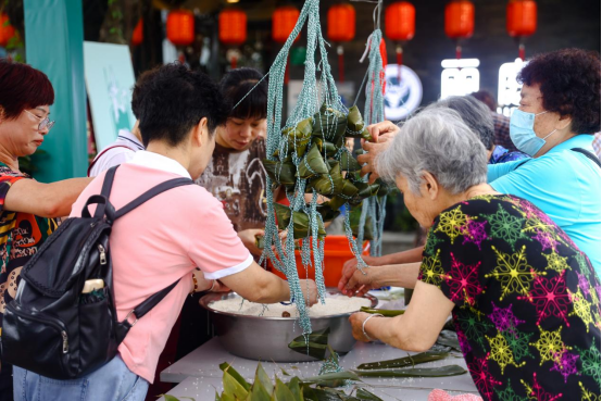 活动现场,传统习俗·忆端午、非遗新韵·赏端午、龙狮争斗庆端午等各类活动相继上演。市民与游客现场体验包粽子、吃薄饼、装香囊等温州端午传统习俗。在一旁,瓯塑、蛋画、木雕等非遗项目,引人驻足观赏。