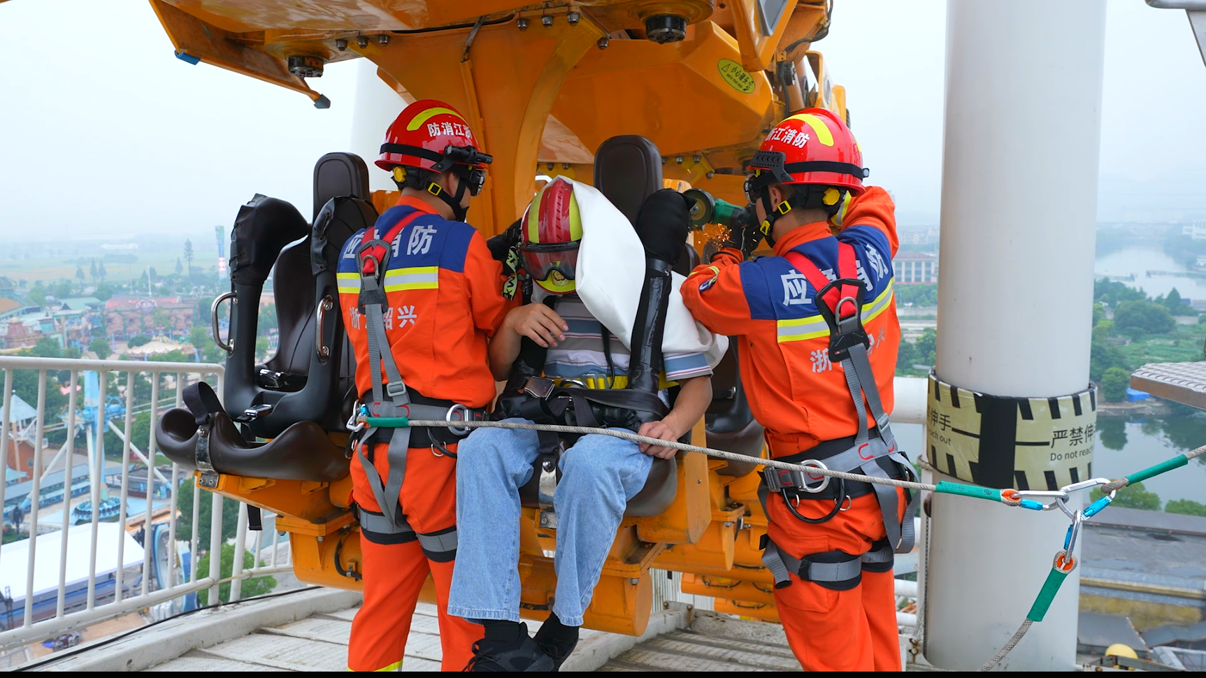 浙江德盛航空救援队、柯桥区消防救援大队等5支抢险救援队伍以及绍兴东方山水乐园员工共120余人参加演练。