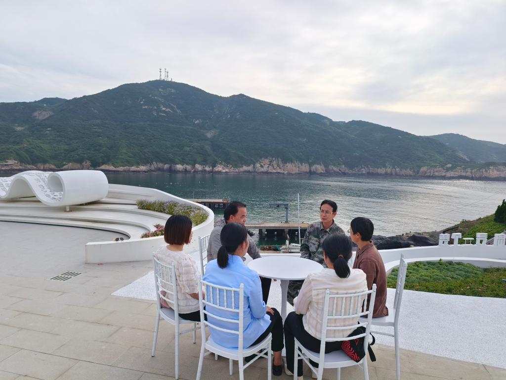 叶利宏和村民代表等在花鸟岛晚风广场讨论海岛乡村游。(资料图)