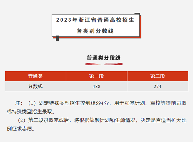 今年浙江高考各类各段分数线如下。