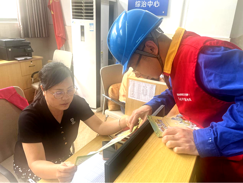 在江南镇秦渡社区,队员们向社区工作人员科普夏季安全用电知识,发放夏季用电安全宣传册、印有安全用电知识的清凉扇。在大源里村,队员们帮助村民检查家中线路设备、电器插座等设施的同时,了解用户夏季用电需求与用电难题,全力提升供电服务水平。