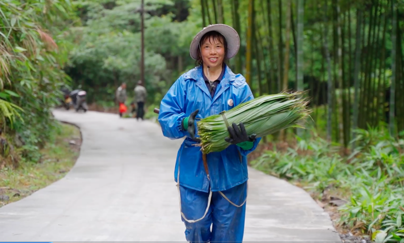 为促进箬叶产业集聚发展,2022年,遂昌县创新打造“1+5+N”箬叶共富工坊集群,通过共富工坊总站浙南箬叶市场,逐步实现箬叶从采摘、加工到收购的全链条全周期管理。如今,范显明一天能采摘一百多斤箬叶,鲜叶无需处理即可直接通过共富工坊销售,每斤至少能卖上六块钱,“早上摘,晚上卖,现场就能拿到钱。不仅省力,赚得还更多了。”范显明说。