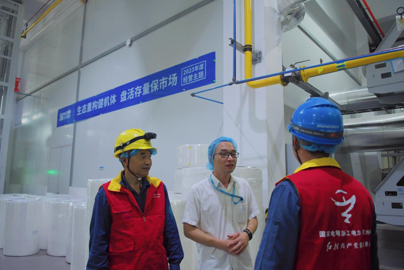 6月28日,在浙江杭州诺邦无纺有限公司的生产车间里,几条巨大的管道纵横排布在室内,耳边能听到机器传出的嗡响声,“目前,余热回收设备的操作和运行上,你们有遇到什么问题吗?”国网杭州市临平区供电公司员工回访问道。