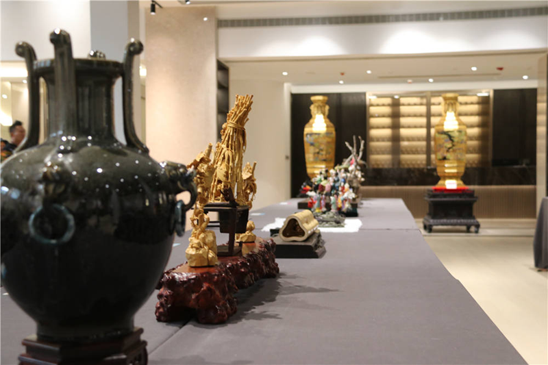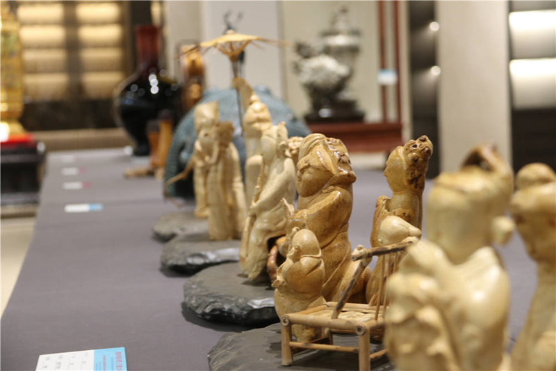 中国民间手工艺精品博览会现场,设有150多个展位,展示刺绣、雕刻、泥塑、民间绘画等80多个类别的民间手工艺品。不同地域的民间风情与多彩文化汇聚于此,充满浓厚的艺术和生活气息。在专设展区内,琳琅满目的衢州本地民间工艺品亮相,引人关注。