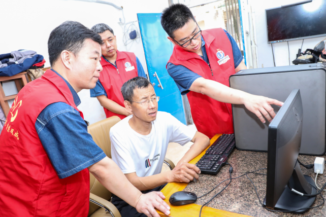 志愿者们帮助尚巷村安装电脑,指导村民软件使用。吴越 摄