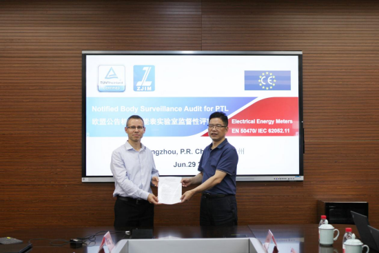 此次监督性评审分为两大环节,首先对浙江省计量院质量管理体系和拥有的EN 50470-1,-2,-3和IEC 62052-11标准全项目的ILAC认可等资质能力进行了详细、全面的资料审查;在现场试验环节,莱茵技术专家全程查看技术人员试验操作过程和技术能力,现场查看设备技术指标和溯源性。经过一天紧张的监督评审,TÜV莱茵匈牙利公司对浙江省计量院ISO/IEC 17025质量体系、电能表检测设备、人员能力给予充分认可,签署了双方合作技术协议,并授权浙江省计量院作为匈牙利莱茵认证内部实验室,拥有欧洲CE-MID计量器具指令的完整授权,为进入欧盟市场的电能表、汽车充电桩等计量器具出具相关证书,开启了浙江省电能表产业进军欧盟市场的首趟直通车。