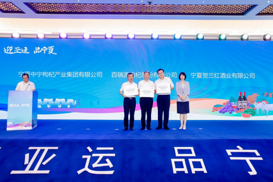 7月7日,“迎亚运 品宁夏”杭州亚运会官方枸杞产品、红酒供应商授牌仪式暨宁夏优质农产品发布会在杭州举行。