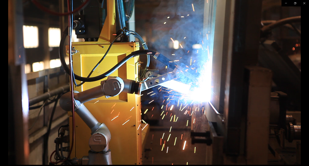 余姚一企业车间机器人机械臂在工作。(受访者供图)