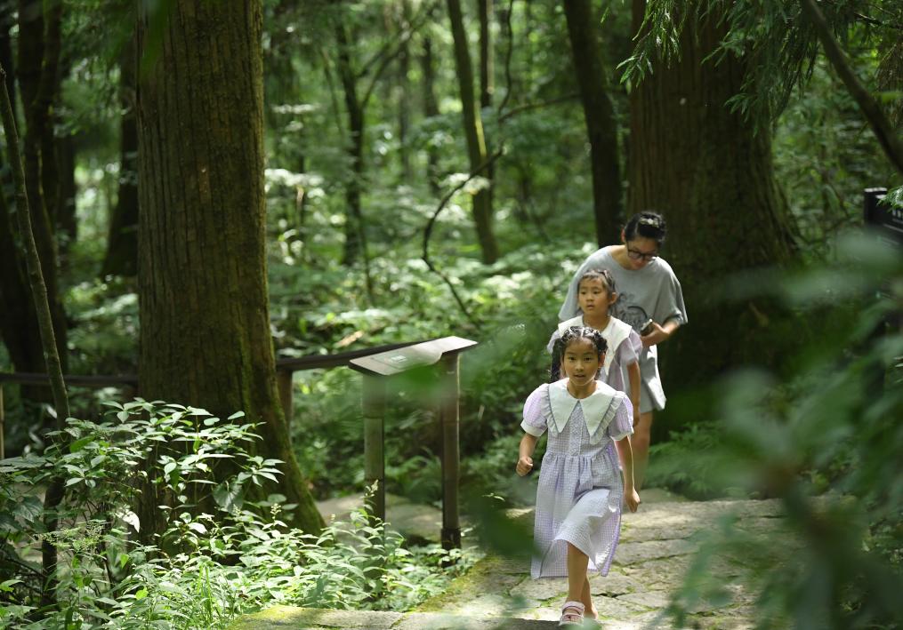 7月11日,人们在杭州临安天目山风景区游玩。新华社记者 翁忻旸 摄pagebreak