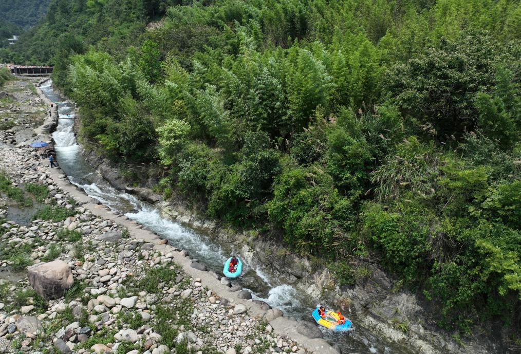 近日,浙江省杭州市持续晴热高温天气,不少市民来到美丽乡村体验高山游、亲水游。新华社记者 翁忻旸 摄pagebreak