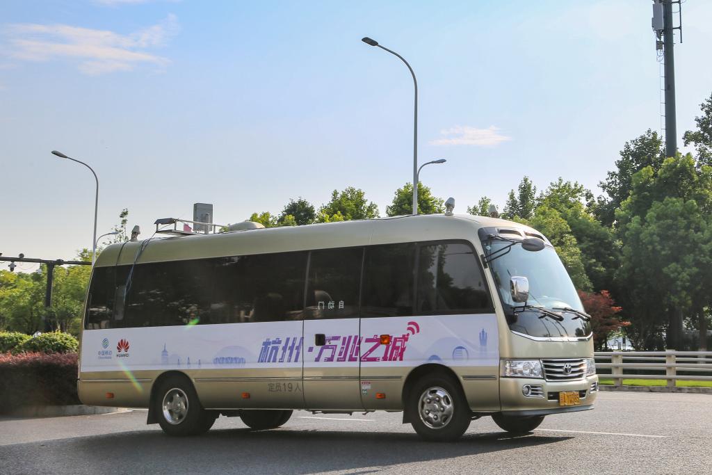 如果想在9月来湖州赛区看比赛,你可以选择乘坐一段基于5G技术建设而成的自动驾驶班车。这条新设置的公交示范环线全长10公里,共设9个站点,往返于德清体育中心和德清地理信息小镇篮球场两座亚运场馆。