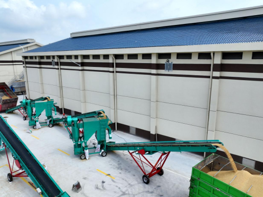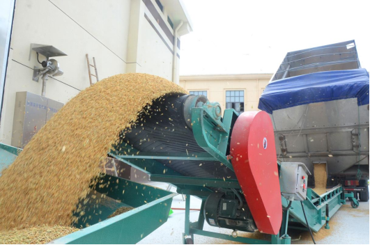 全自动化卸车装备将检验合格的夏粮输送进粮仓,全程智能化收储,入库安全又高效,大大方便了售粮农民。
