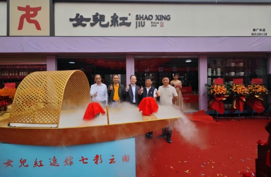绍兴黄酒行业协会会长徐明光、云南浙江商会会长沈长虹、女儿红公司党委书记董事长胡志明、云南酒文化研究会会长杨亮、大成酒庄董事长成明五人注酒共同开启酝藏18年的“桂花林藏”女儿红,缓缓注入乌篷船,寓意“女儿红”融入了“最美云南”。希望通过女儿红品牌店这一重要平台,展示女儿红品牌及中国黄酒的文化底蕴、历史渊源、制作工艺、品鉴技巧等内容,让西南市场的消费者更好地了解和品味绍兴黄酒、了解女儿红文化。