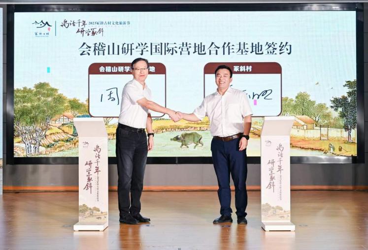 会稽山研学国际营地合作基地签约。绍兴市柯桥区稽东镇人民政府供图