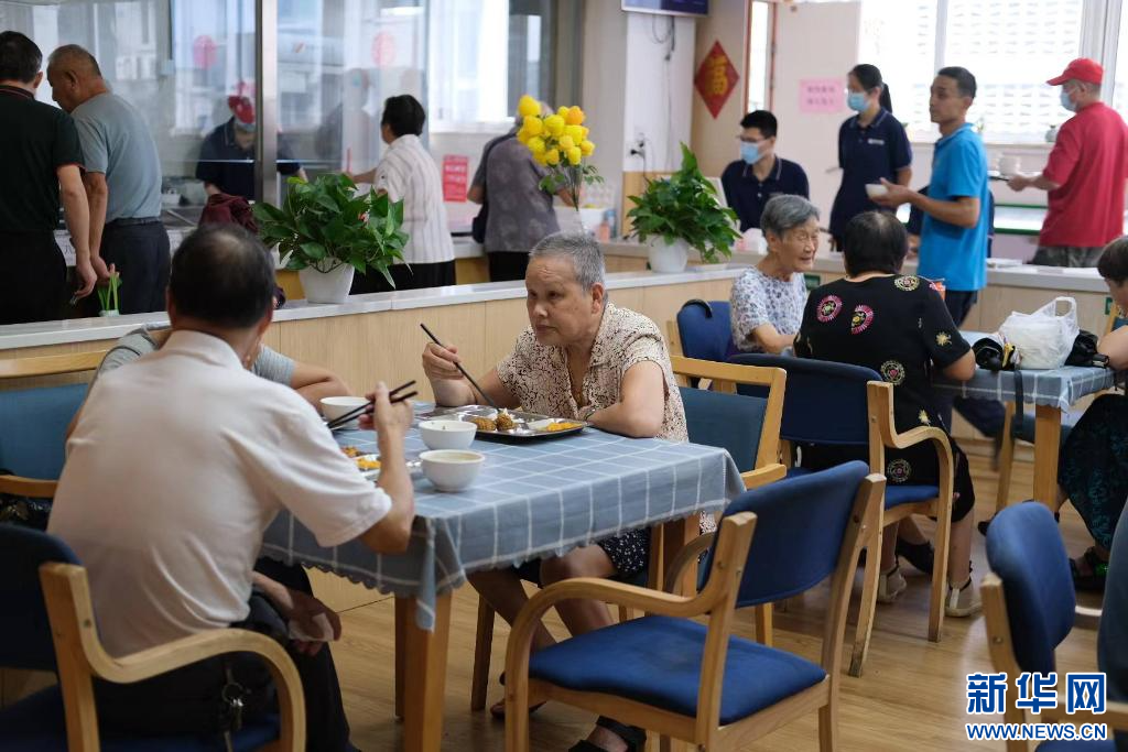 杭州市西湖区北山街道幸福餐厅,老年人正在用餐。秦宇杭 摄