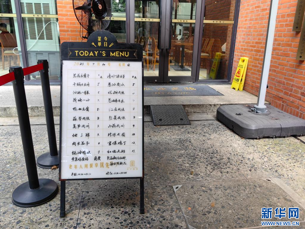 上海市徐汇区天平路街道“66梧桐院”邻里餐厅大门前摆放着当日菜单价目表。新华社记者吴振东 摄