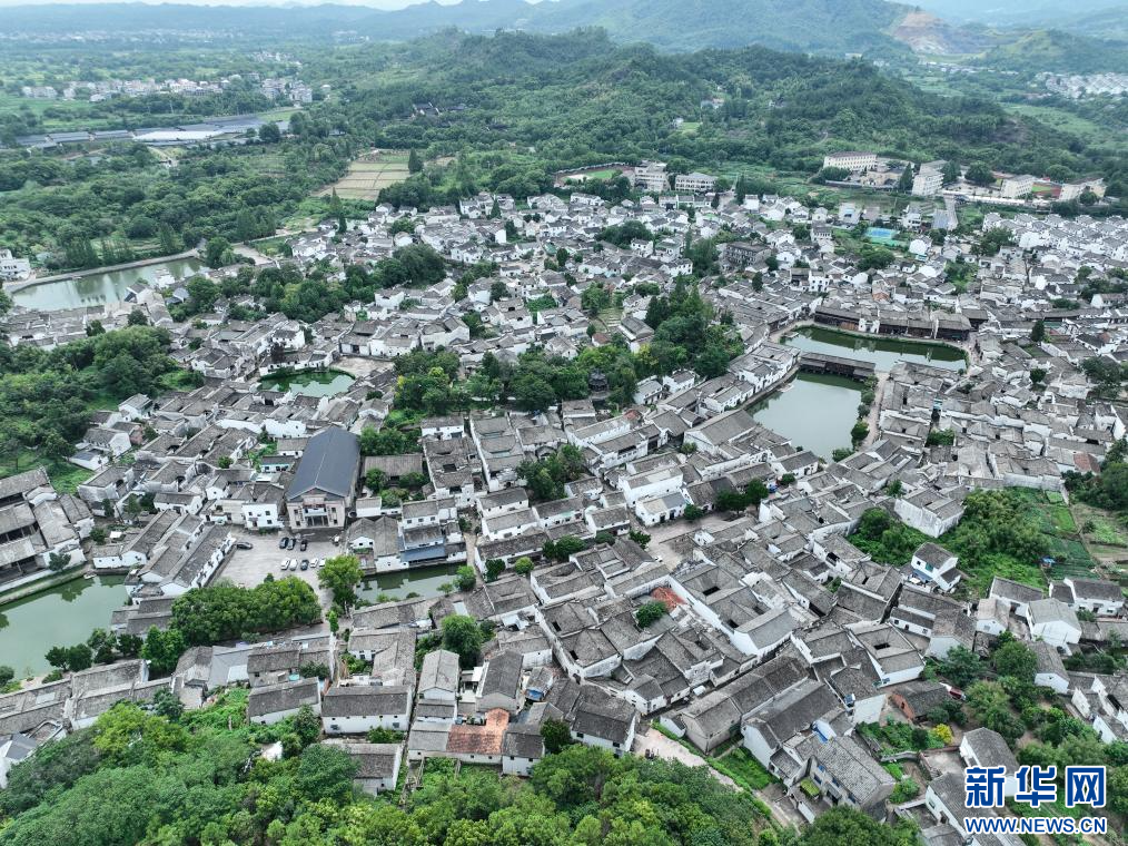 鸟瞰诸葛村(无人机照片,8月1日摄)。新华社记者 翁忻旸 摄