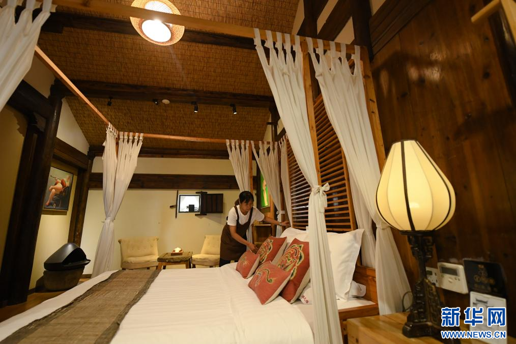 8月1日,工作人员在诸葛村一家民宿内整理房间。 新华社记者 翁忻旸 摄pagebreak