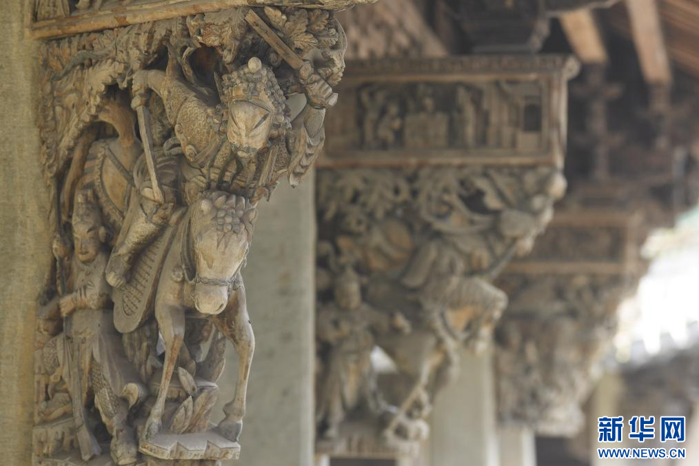 诸葛村丞相祠堂雕刻精湛的“牛腿”(8月1日摄)。 新华社记者 翁忻旸 摄pagebreak