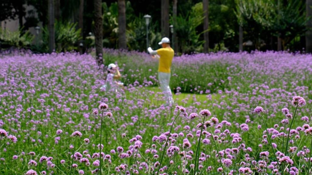 温州马鞍池公园开展迎亚运景观野花试播工作。新华网发 温州市文明办供图