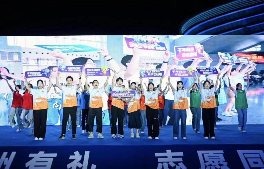 据统计,温州现有741支志愿服务骨干队伍入驻358个亚运志愿服务区块,用最美的微笑、文明的礼仪喜迎亚运。