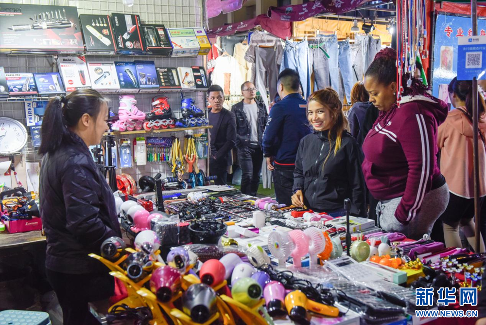三挺路夜市旁的商贸区同样热闹非凡,这里也是中外客商来义的重要打卡点。
