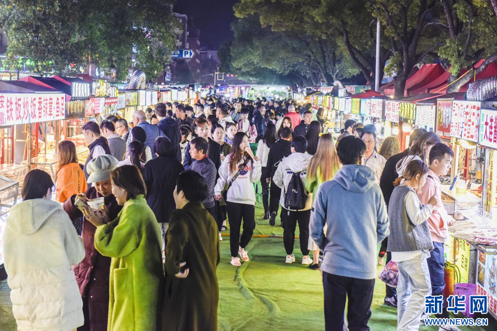 熙熙攘攘的人群、此起彼伏的吆喝声、空气中弥漫着的美食香气……夜市中,熟悉的烟火气又回来了。