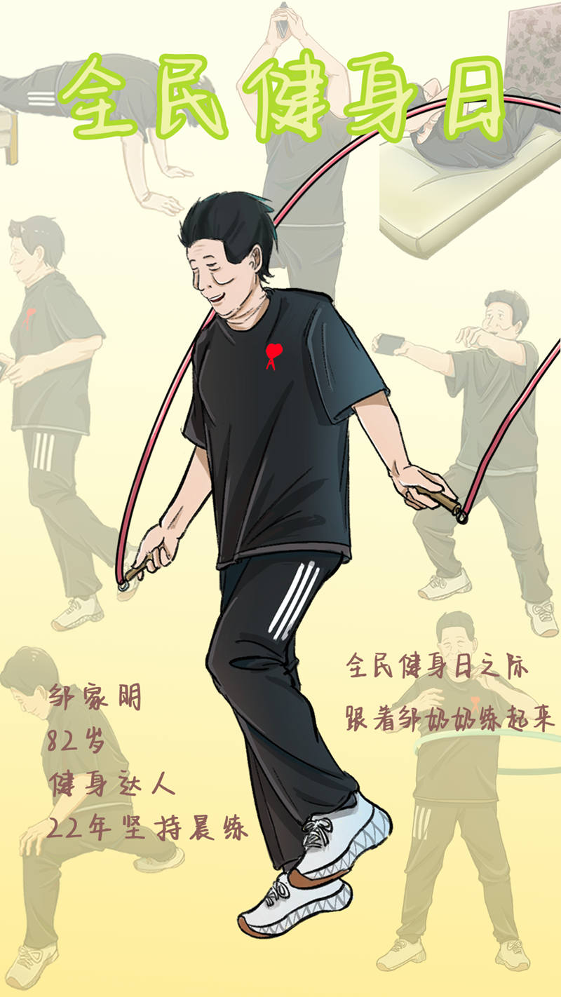 手绘丨全民健身日,跟着邹奶奶一起悦动青春