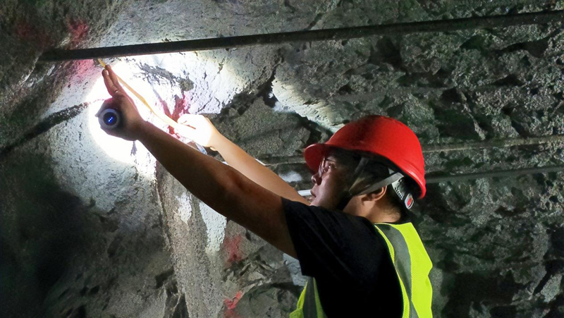 “待上几分钟感觉就像洗了澡一样,浑身湿透。”“90后”隧道技术员周谷主要负责施工日常技术工作。由于改扩建项目的特殊性,现场施工要在原有爆破设计方案的基础上,对现场爆破设计参数不断优化。从布置炮眼、打设角度、打设深度,到单孔装药量、单段装药量,这些工序都需要周谷层层把关。为此,周谷每天都要在洞内待上至少4个小时。