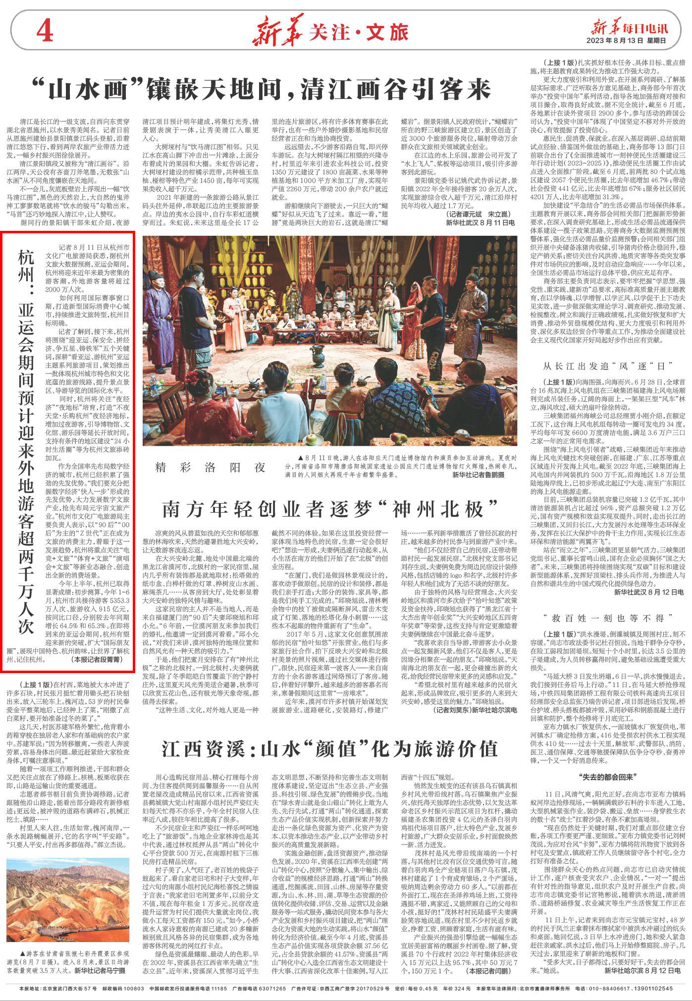 今年上半年,杭州已取得显著成绩:初步测算,今年1-6月,杭州市共接待游客5353.3万人次、旅游收入915亿元,按同比口径,分别较去年同期增长64.5%和65.3%。在即将到来的亚运会期间,杭州有望迎来新的突破,扩大“国际朋友圈”,展现中国特色、杭州韵味,让世界了解杭州、记住杭州。(记者 段菁菁)