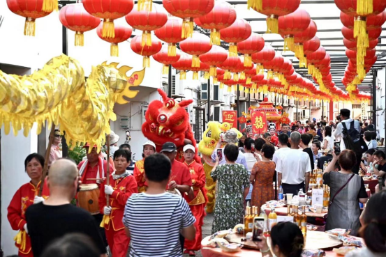 “千人宴”向来是东沙弄堂节的重头戏。“今年,不少已经居住在宁波、上海、杭州的古镇老居民特地赶回来,在家办了几桌,宴请亲友。”东沙镇镇长张鋆说,当晚古镇千人宴达到近200桌的规模,居民和游客齐聚的热闹场面让整个古镇“沸腾”起来。