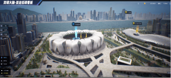 鼠标轻点屏幕左侧的“亚运核心区”模块,即刻展示出亚运场馆、亚运村等核心场所的全景地图,“经过调研,我们为每一个场馆构建了减排画像,立体打造各场馆减排‘一馆一档’,全过程测算减排效益。”浙江中新电力工程建设有限公司自动化分公司员工徐彬说,通过空调柔性控制系统、智能照明控制系统、雨水回收等技术,可以最大程度地节约能源。