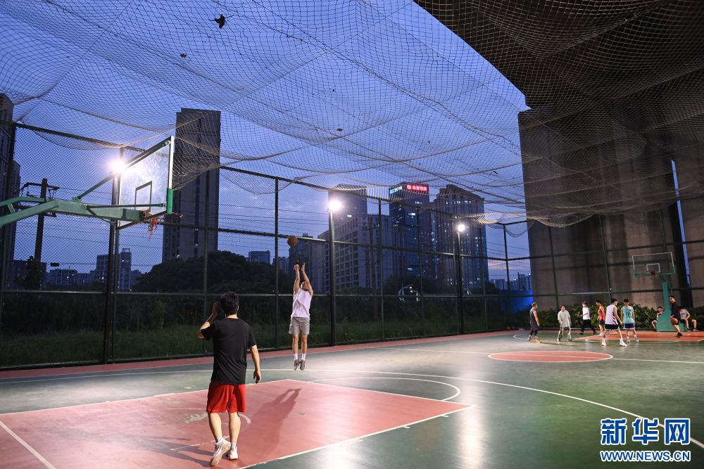 这是市民在钱江世纪城体育公园打篮球(2022年9月20日摄)。新华社记者 黄宗治 摄