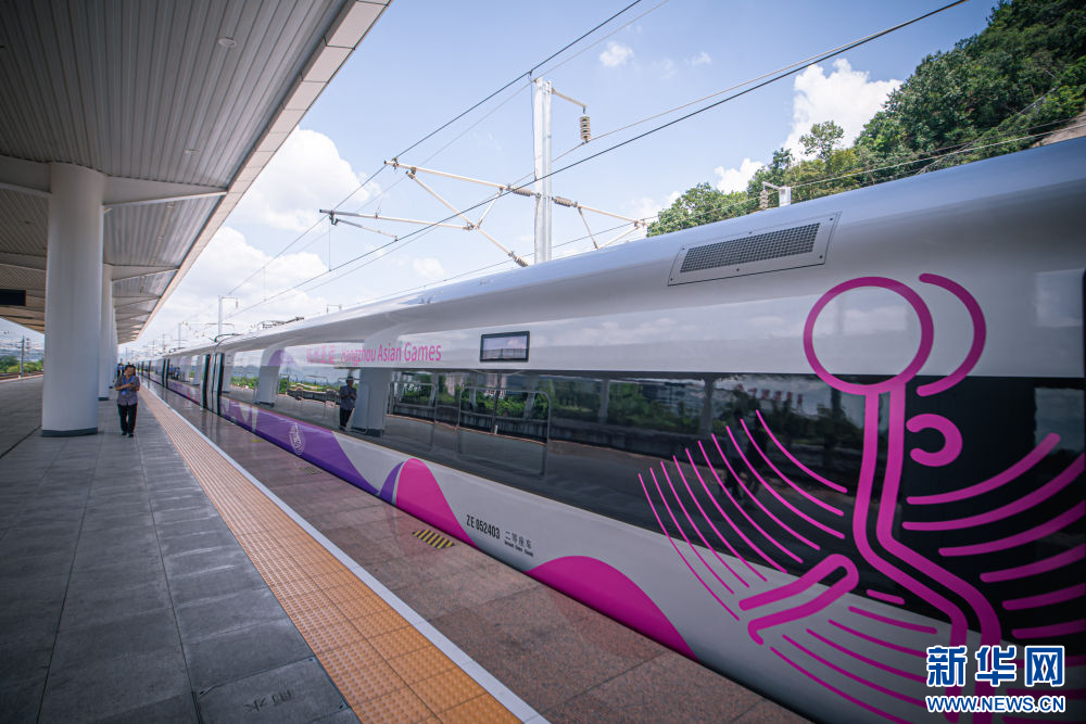 这是亚运智能动车组停靠在德清站站台(2023年8月4日摄)。新华社记者 江汉 摄