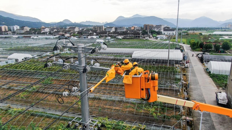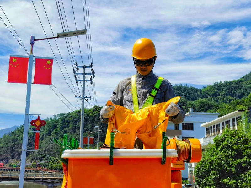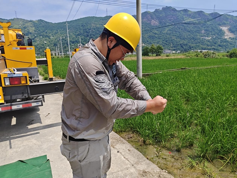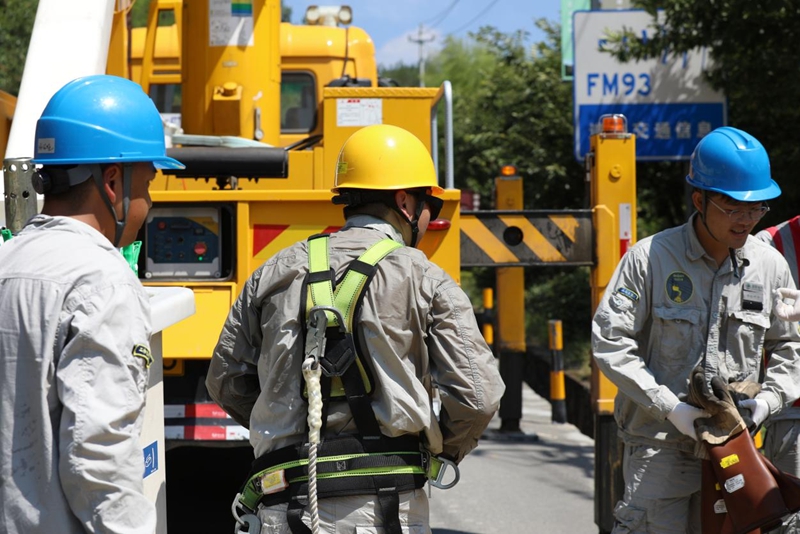 8月15日,图盛集团温州昌盛龙港分公司带电作业中心工作人员前往温州龙港市10千伏文涛S527线2号杆开展带电搭接引流线和开关,保障供电可靠性和提升用户的用电体验。林青青 摄