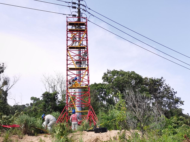 7月6日,在温州市洞头区大门变10千伏振兴J826线现场,图盛集团洞头昌海公司采取绝缘脚手架平台带电作业的方式顺利完成新布点台区外垟青公变供电,提高沿线村居的用电可靠性。唐素静 摄