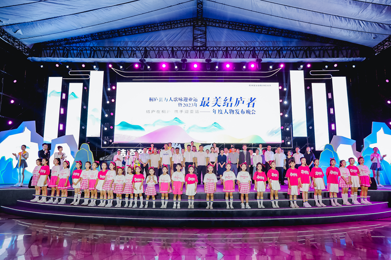 8月23日,“结庐在桐庐·携手迎亚运”桐庐县万人歌咏迎亚运暨2023年“最美结庐者”年度人物发布晚会在浙江省杭州市桐庐县举行。