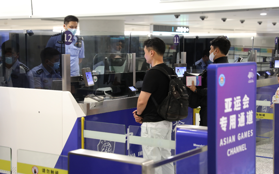 杭州萧山国际机场是杭州亚运会人员官方出入境口岸。“杭州边检站证件研究室提前对杭州亚运会身份注册卡样本进行采样研究,并对一线检查员进行了全方位的培训。”浙江出入境边防检查站总站杭州边检站副站长王晶说。