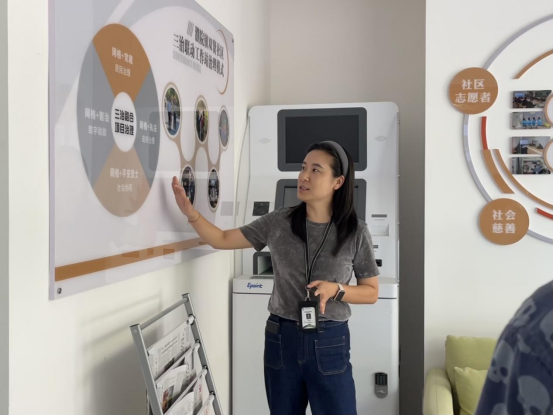 双贤社区党总支书记姚越峰介绍“三治联动工作站”。