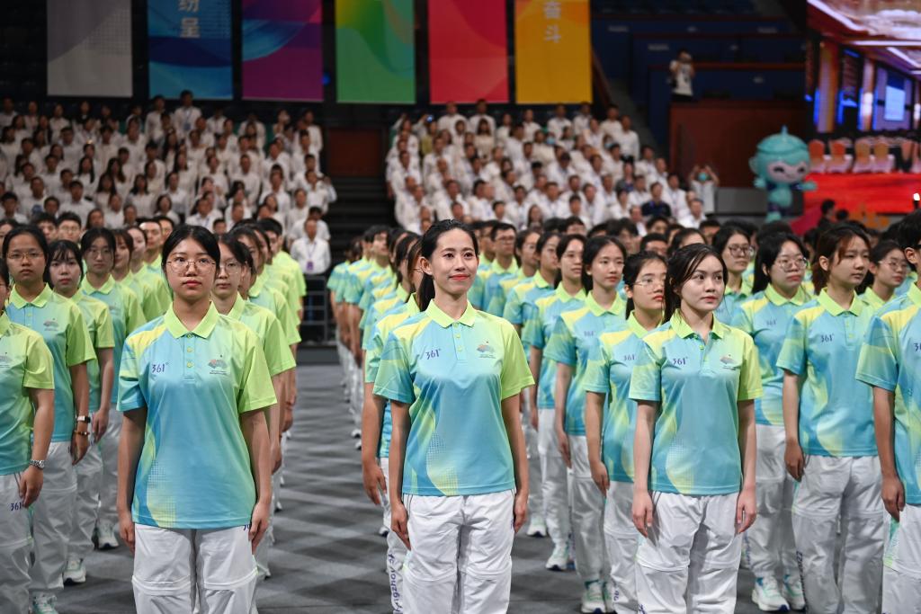 8月24日,杭州亚运会、亚残运会赛会志愿者在出征仪式上。新华社记者黄宗治摄