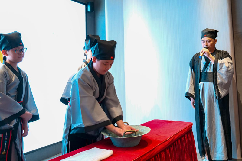 8月25日,浙江省温州市鹿城区的永嘉学派馆里,“云上书院”28位新“学派门生”迎来了一场别样的开学入学礼,并同步开启主题研学活动。
