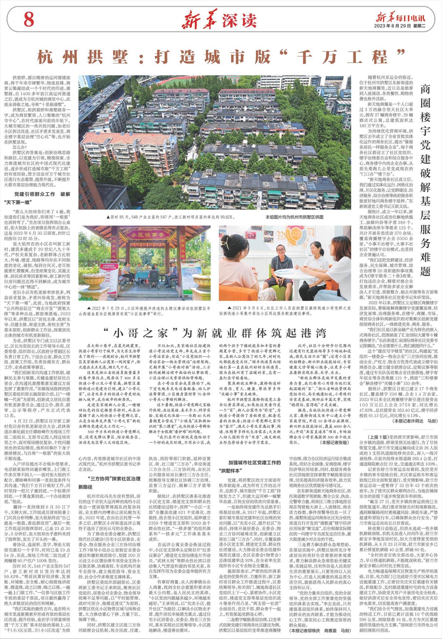 2022年以来,拱墅区立足辖区商圈楼宇发展实际,着眼破解商圈楼宇党建覆盖难、经济发展难、治理服务难,在楼宇、商圈、市场、商贸综合体和两新组织相对集聚区创新党建统领商务社区,一体推进党务、商务、服务。